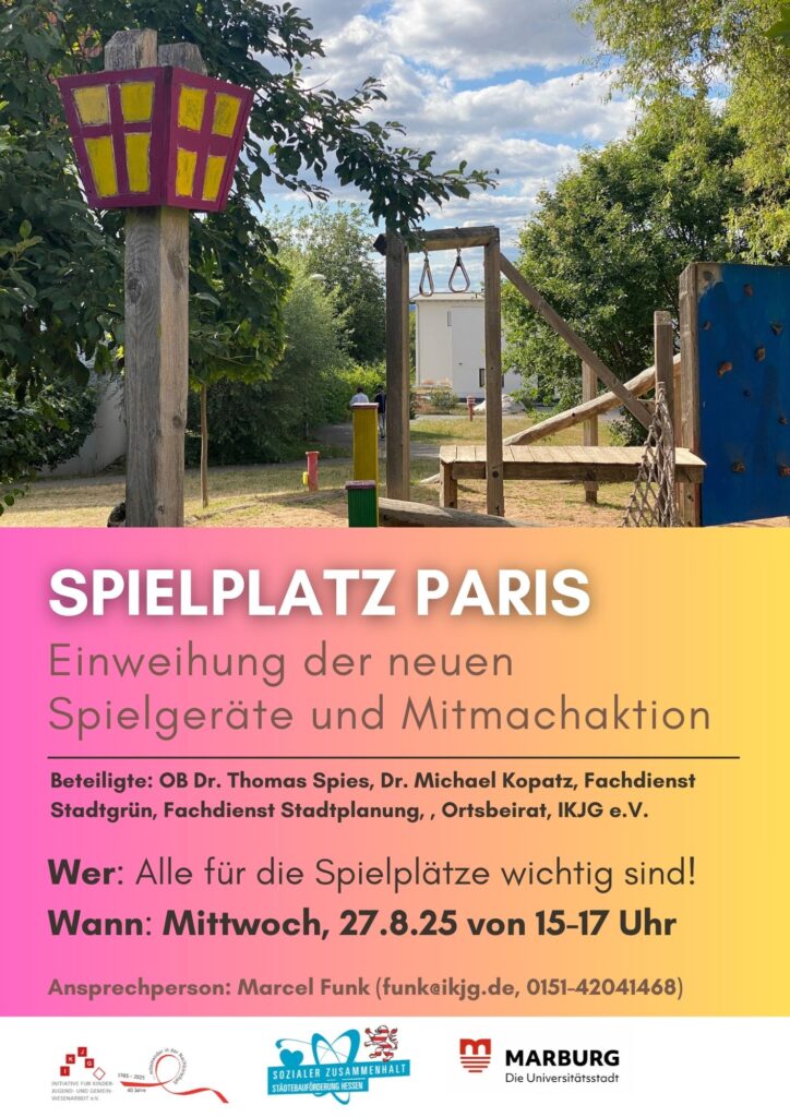 Aktion am Spielplatz Paris mit OB Dr. Spieß und Dr. Kopatz am 27.8. um 15 Uhr